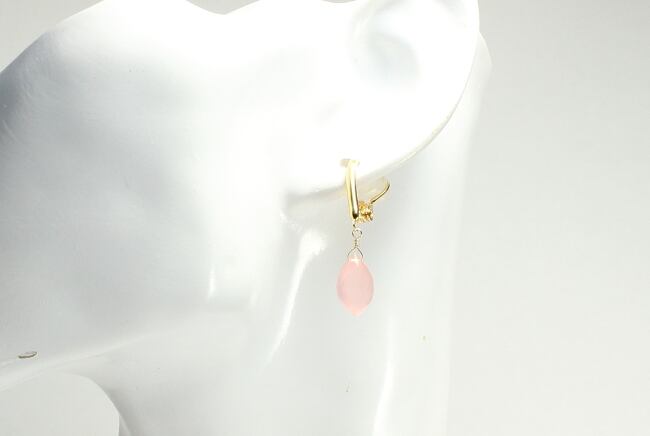 ぷっくりと可愛らしいピンクカルセドニーの一粒イヤリング。