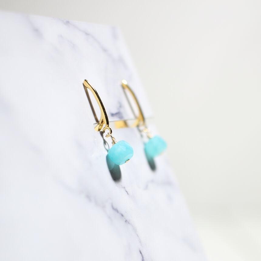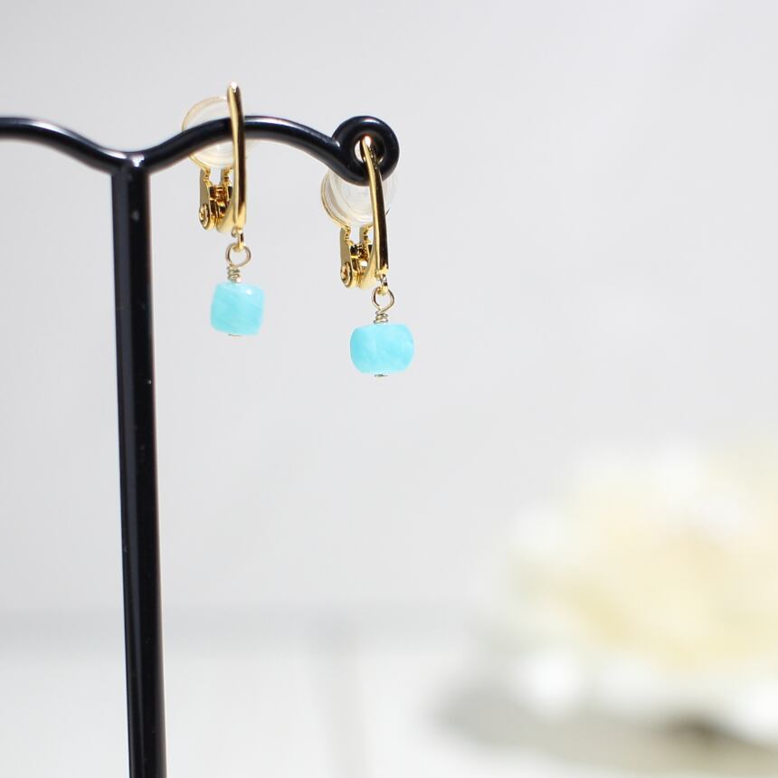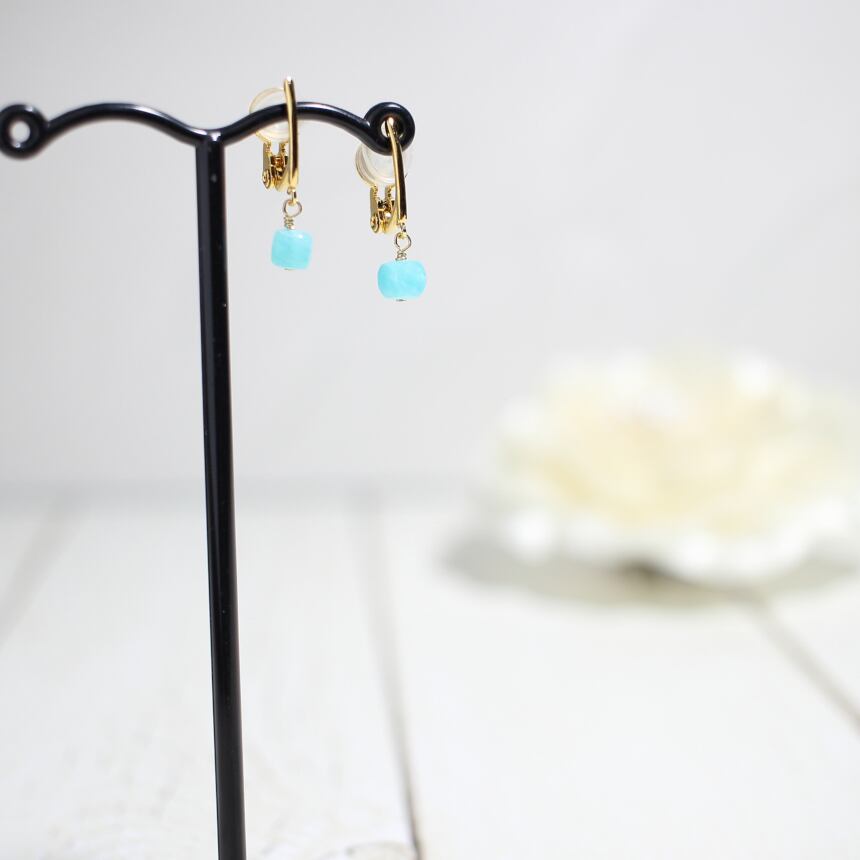ミニマル☆ピアスみたい/アマゾナイトシリカのキューブイヤリング/華奢で痛くないプチイヤリング