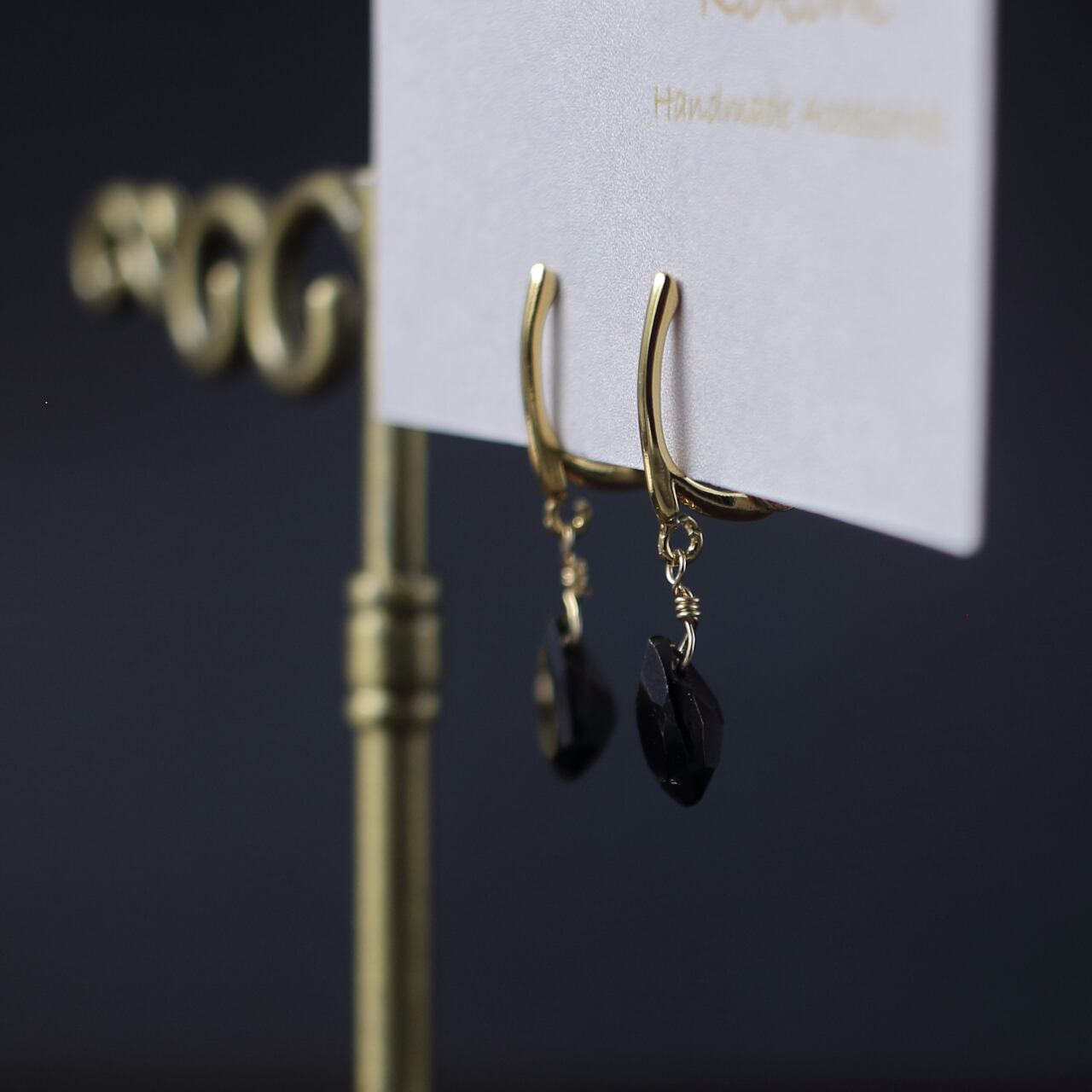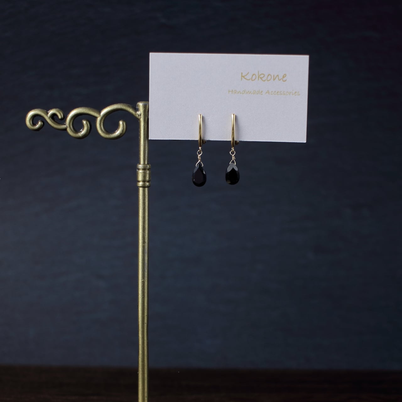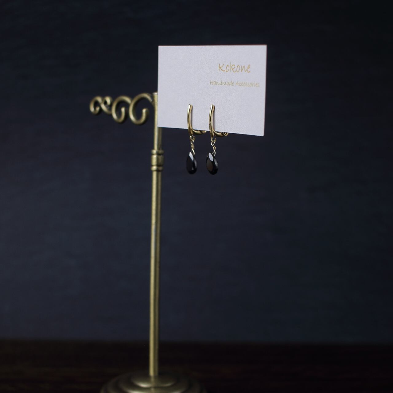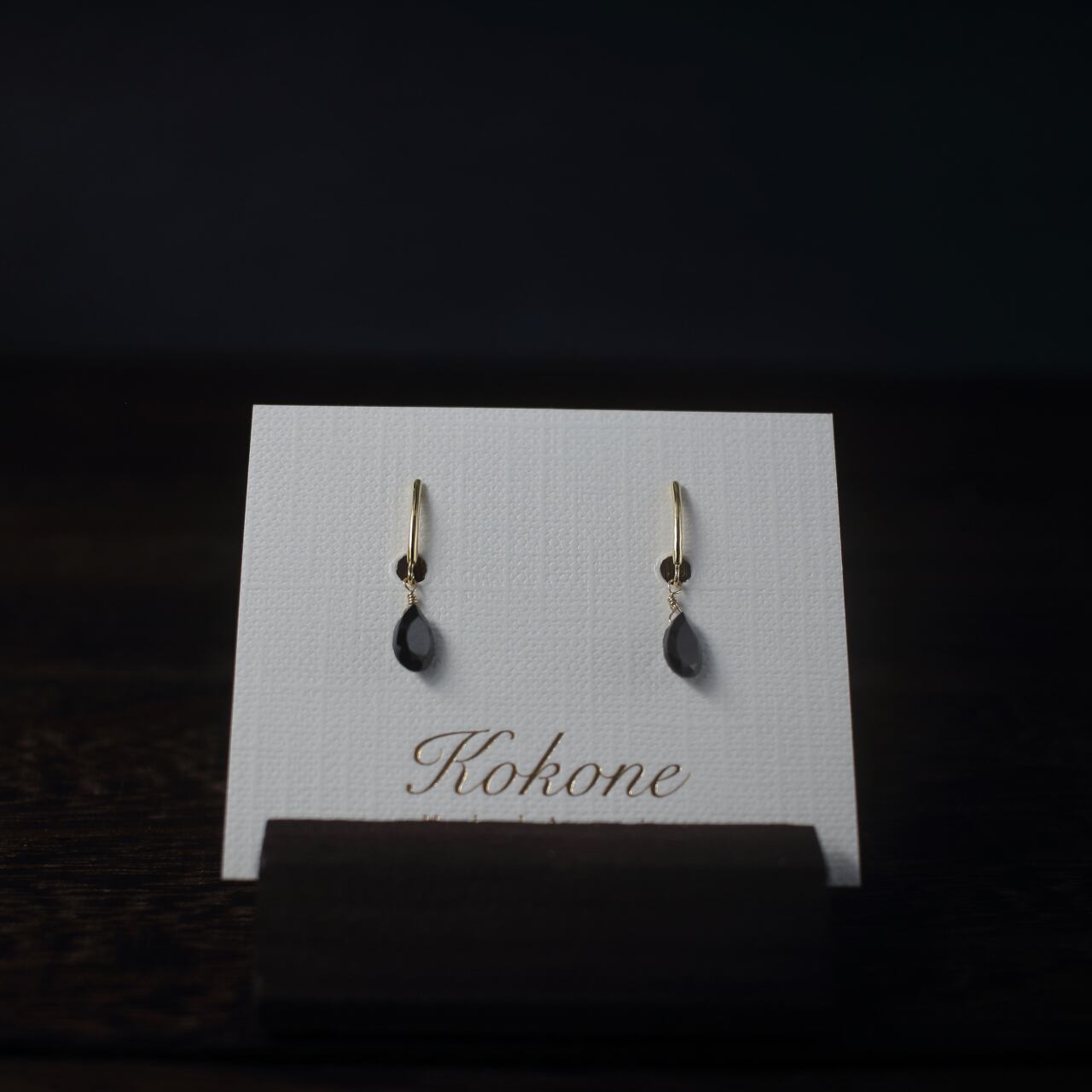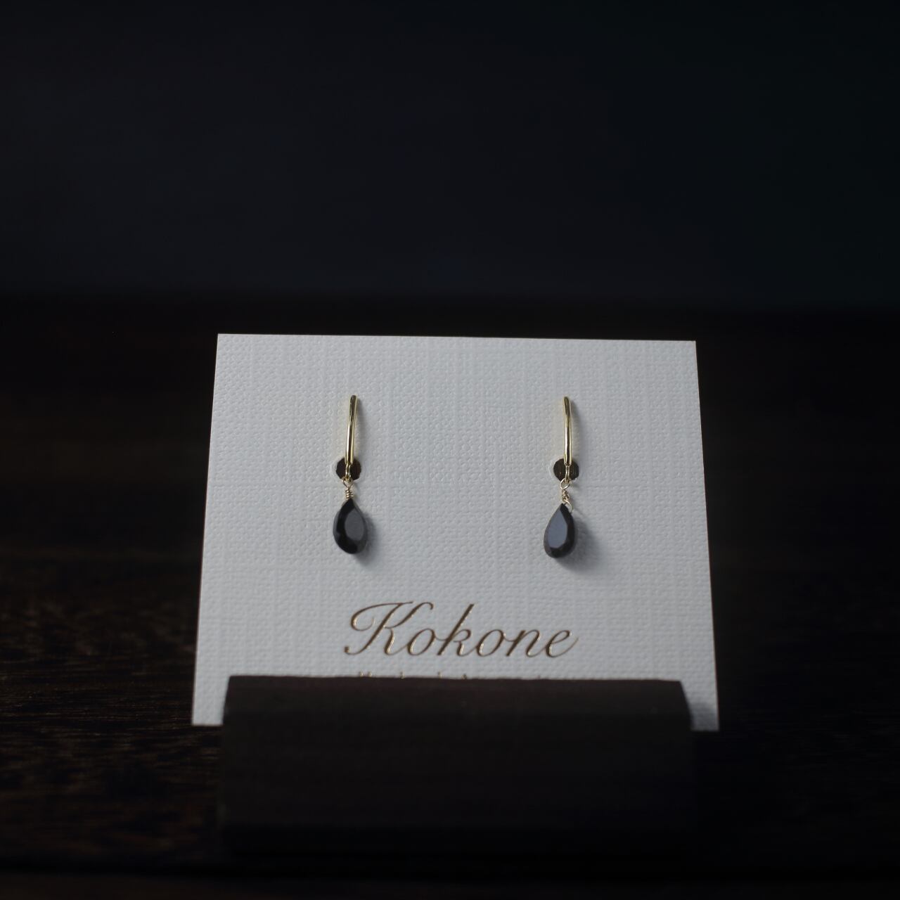 痛くないイヤリング/ピアスみたい/ブラックスピネルの一粒イヤリング/華奢で痛くないイヤリング