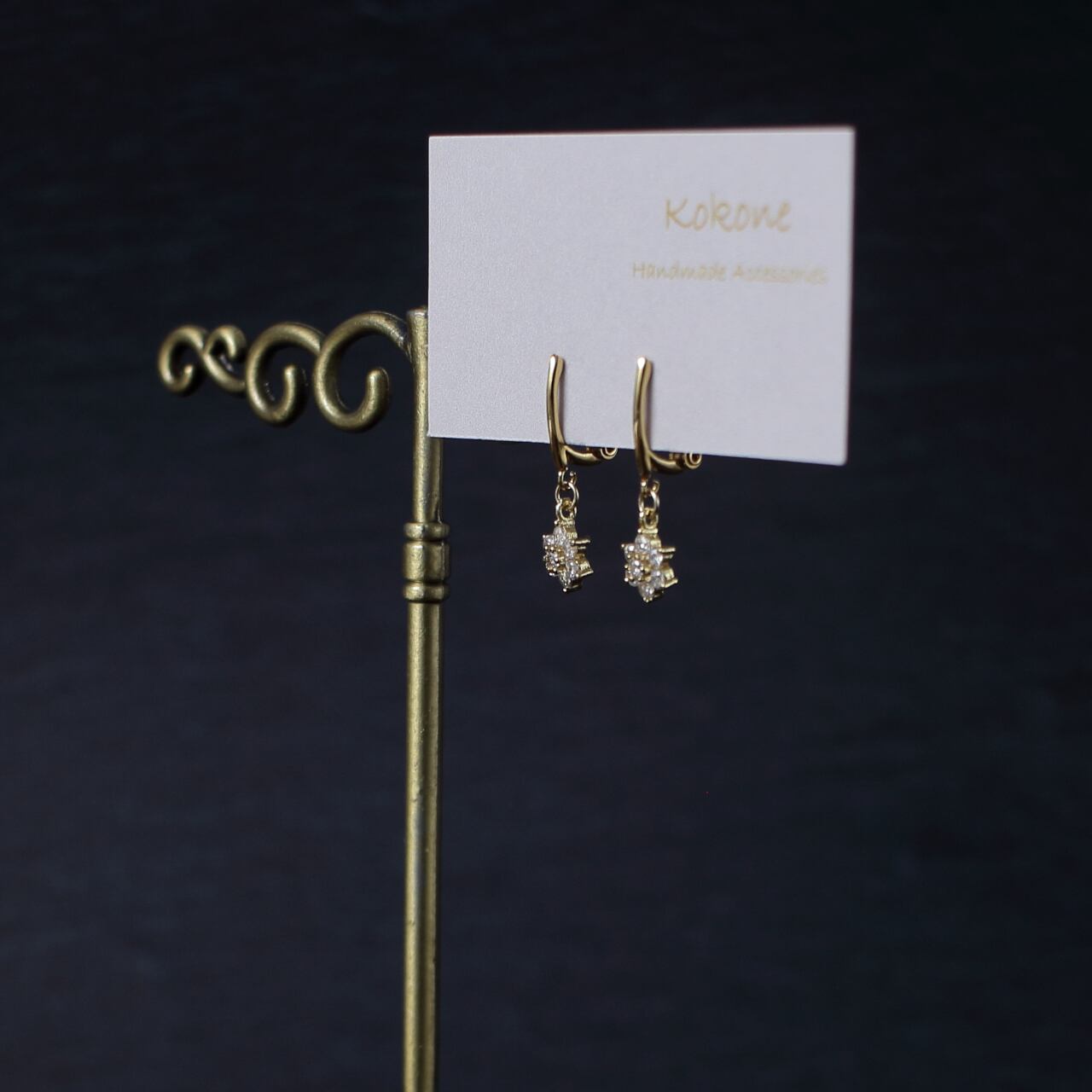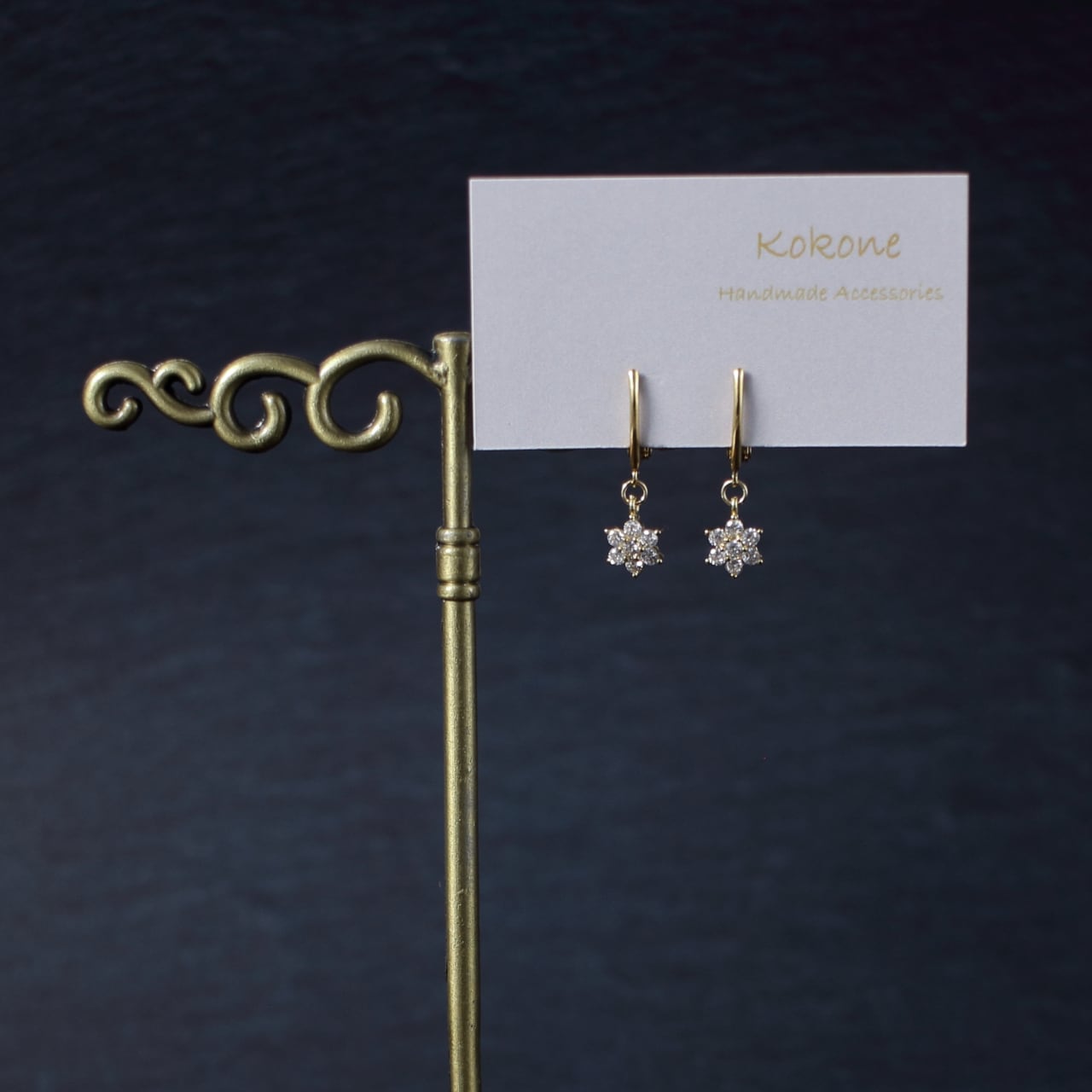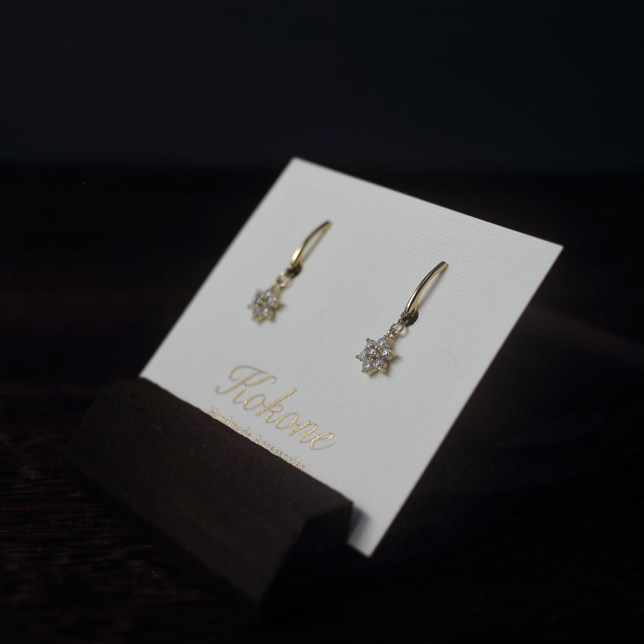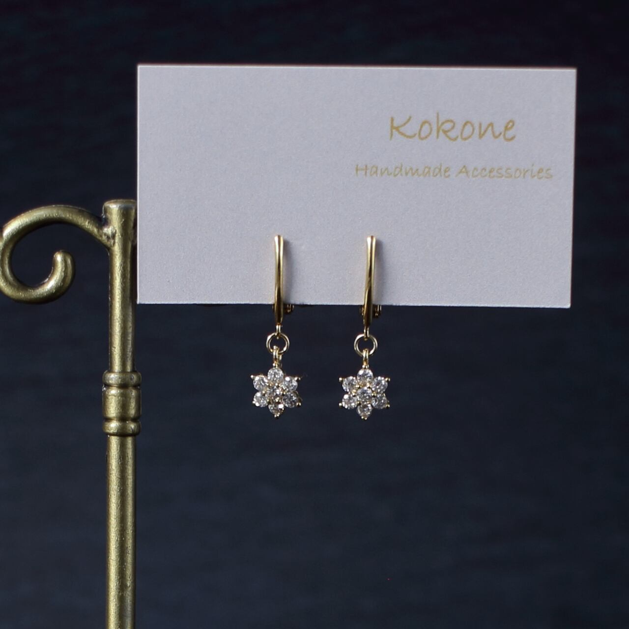 キュービックジルコニアが輝く可憐まお花のイヤリングです。