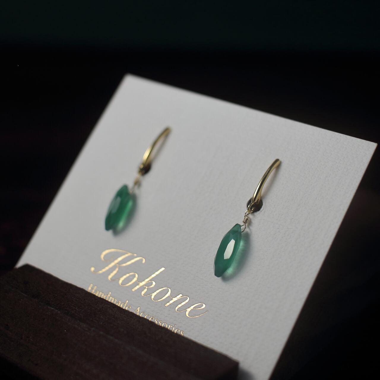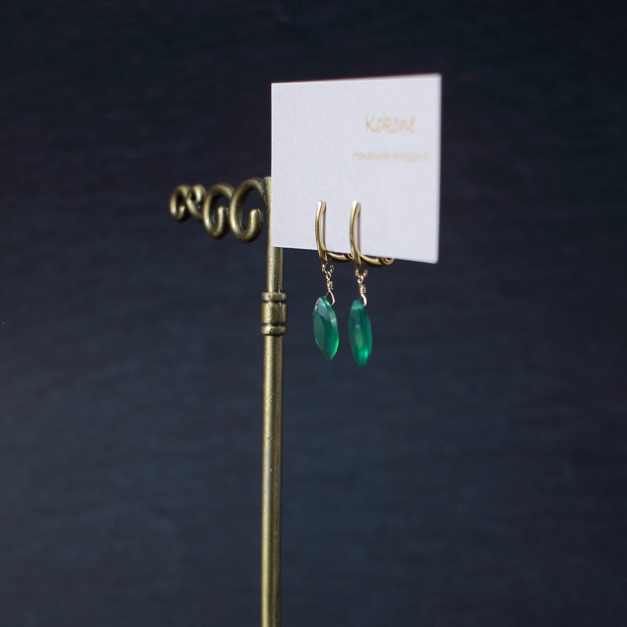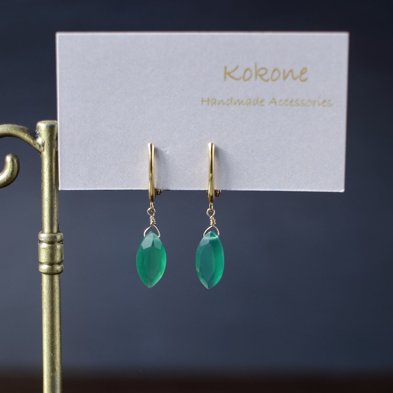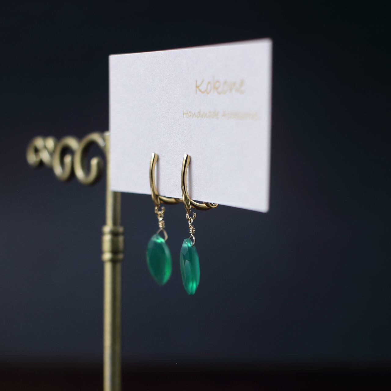 ファセットカットのグリーンオニキスの一粒イヤリングです。
