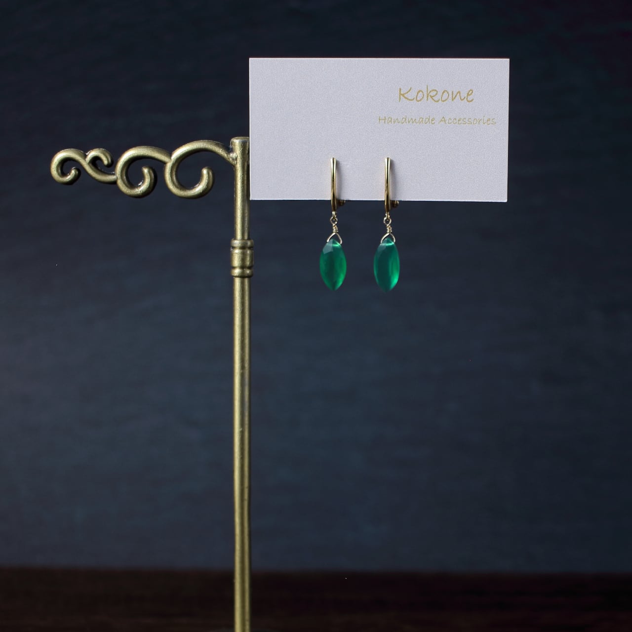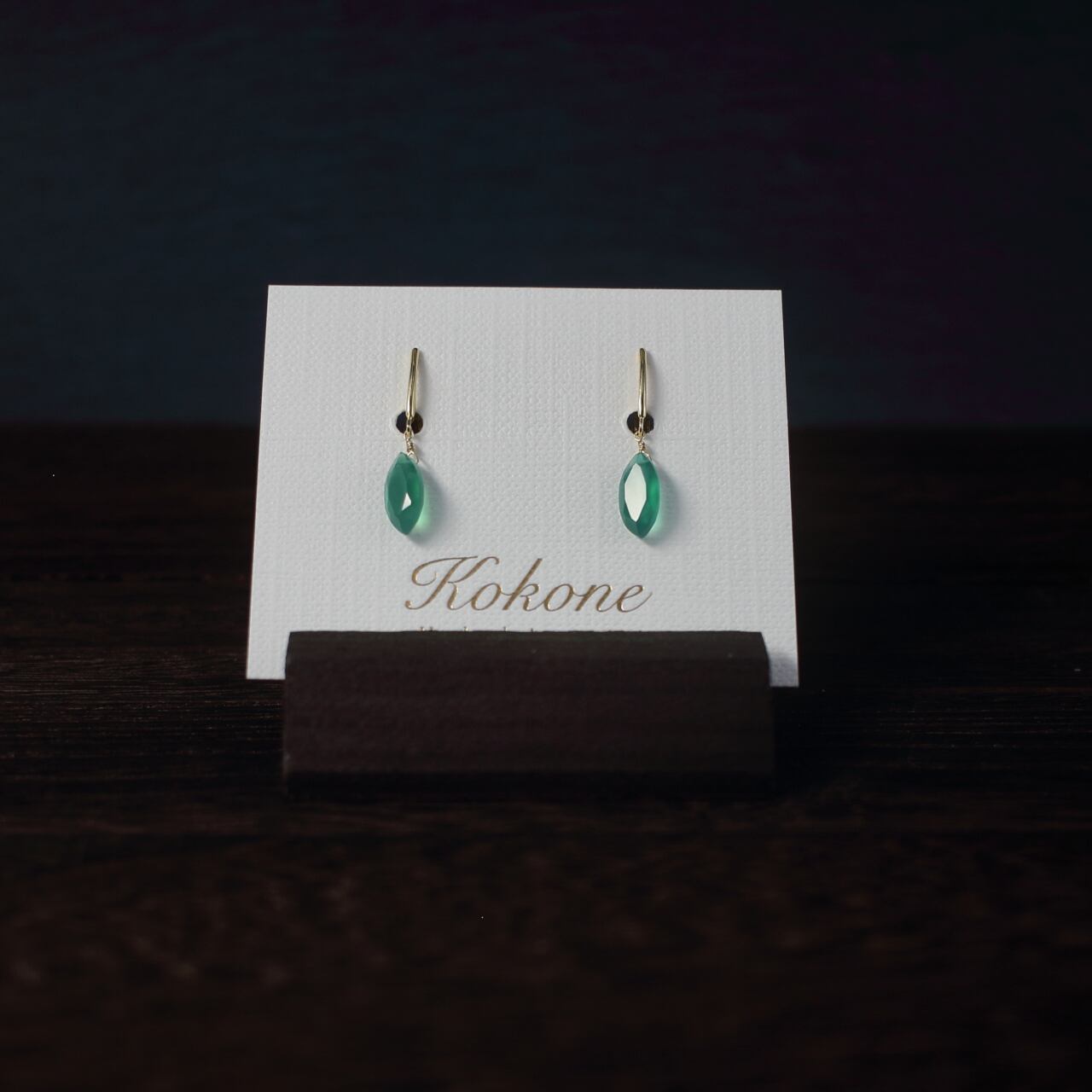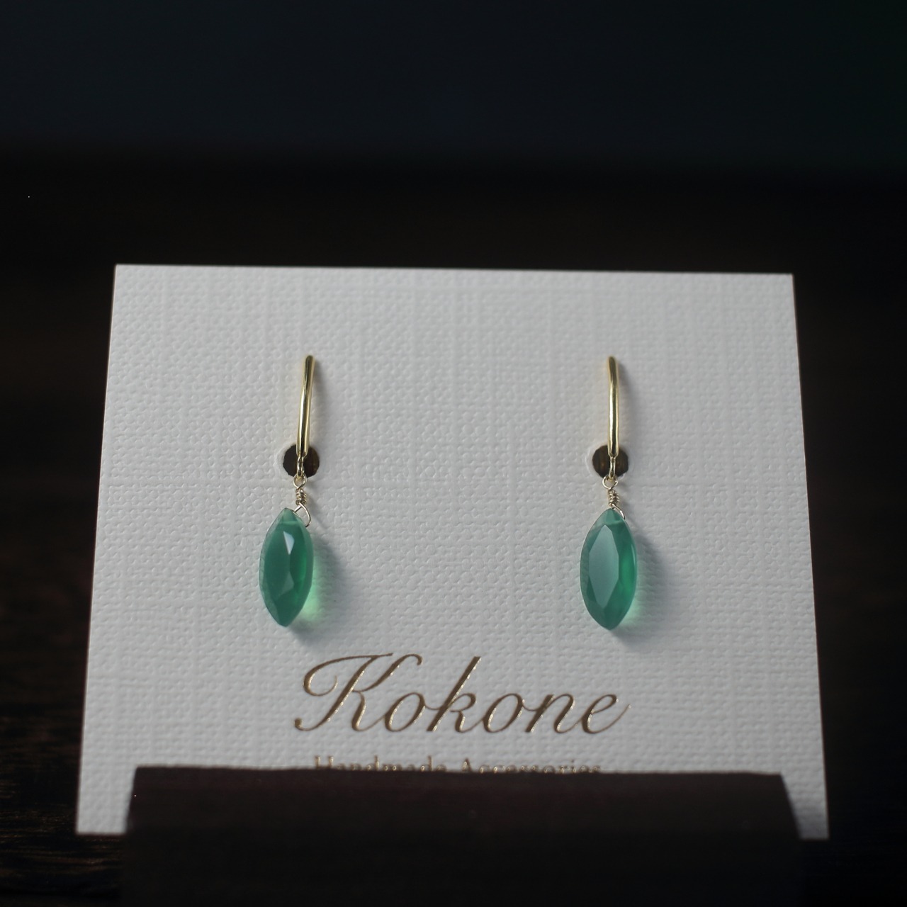 ファセットカットのグリーンオニキスの一粒イヤリングです。