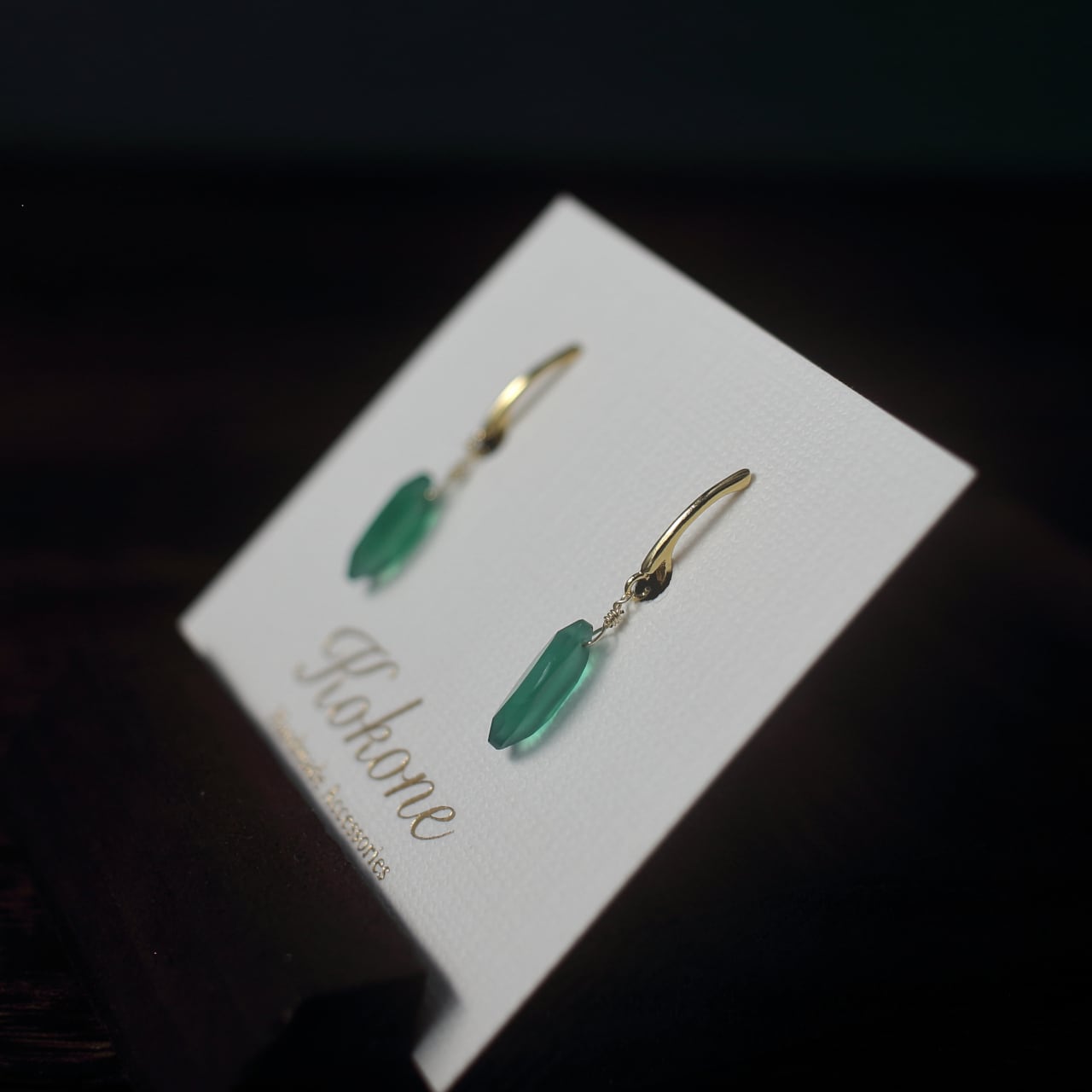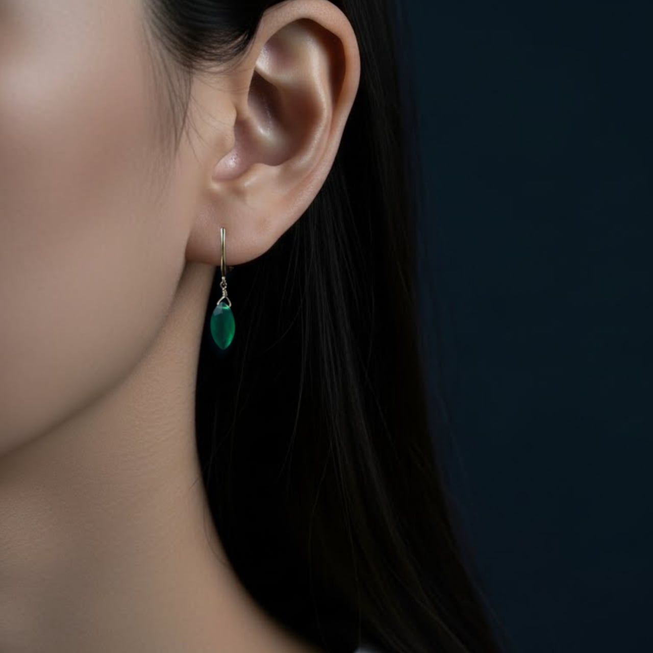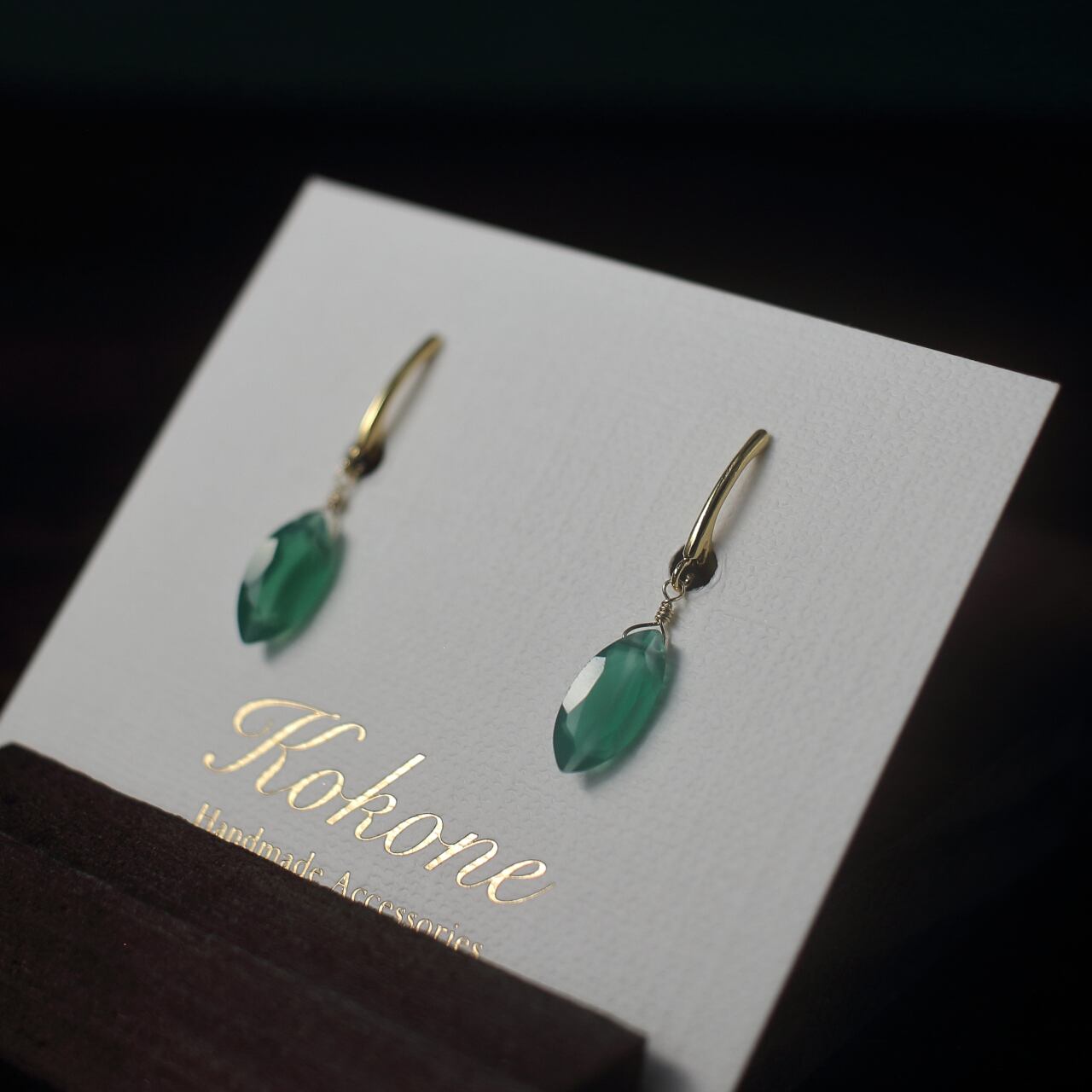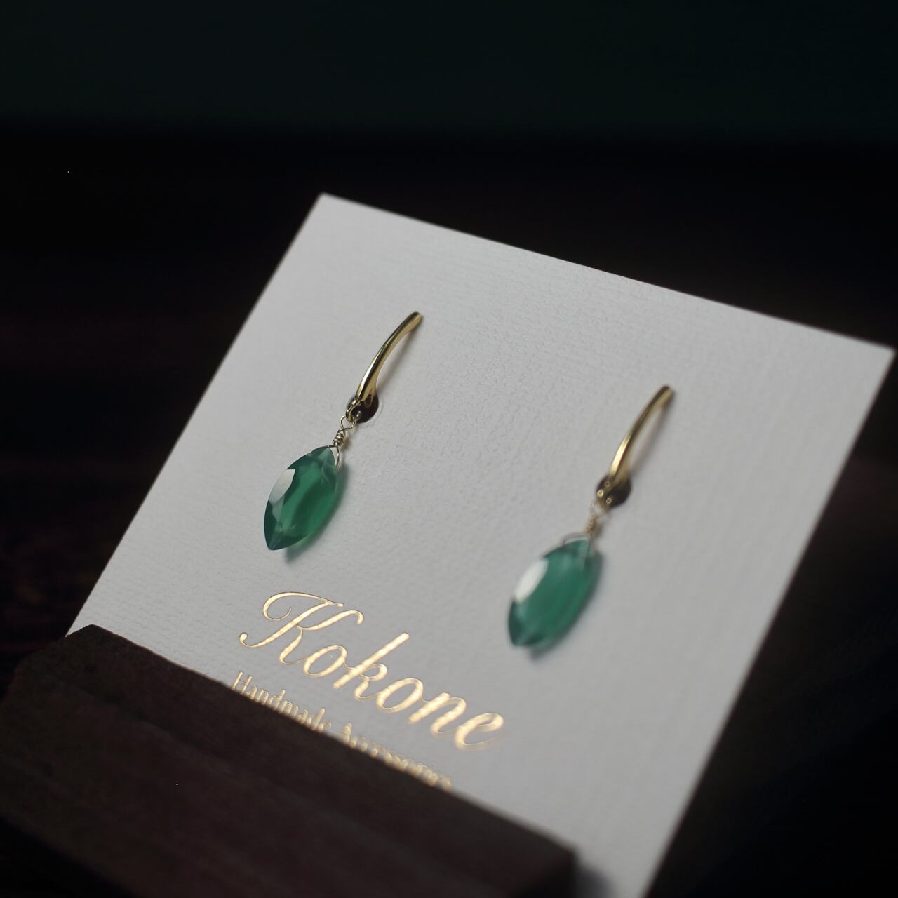 ファセットカットのグリーンオニキスの一粒イヤリングです。