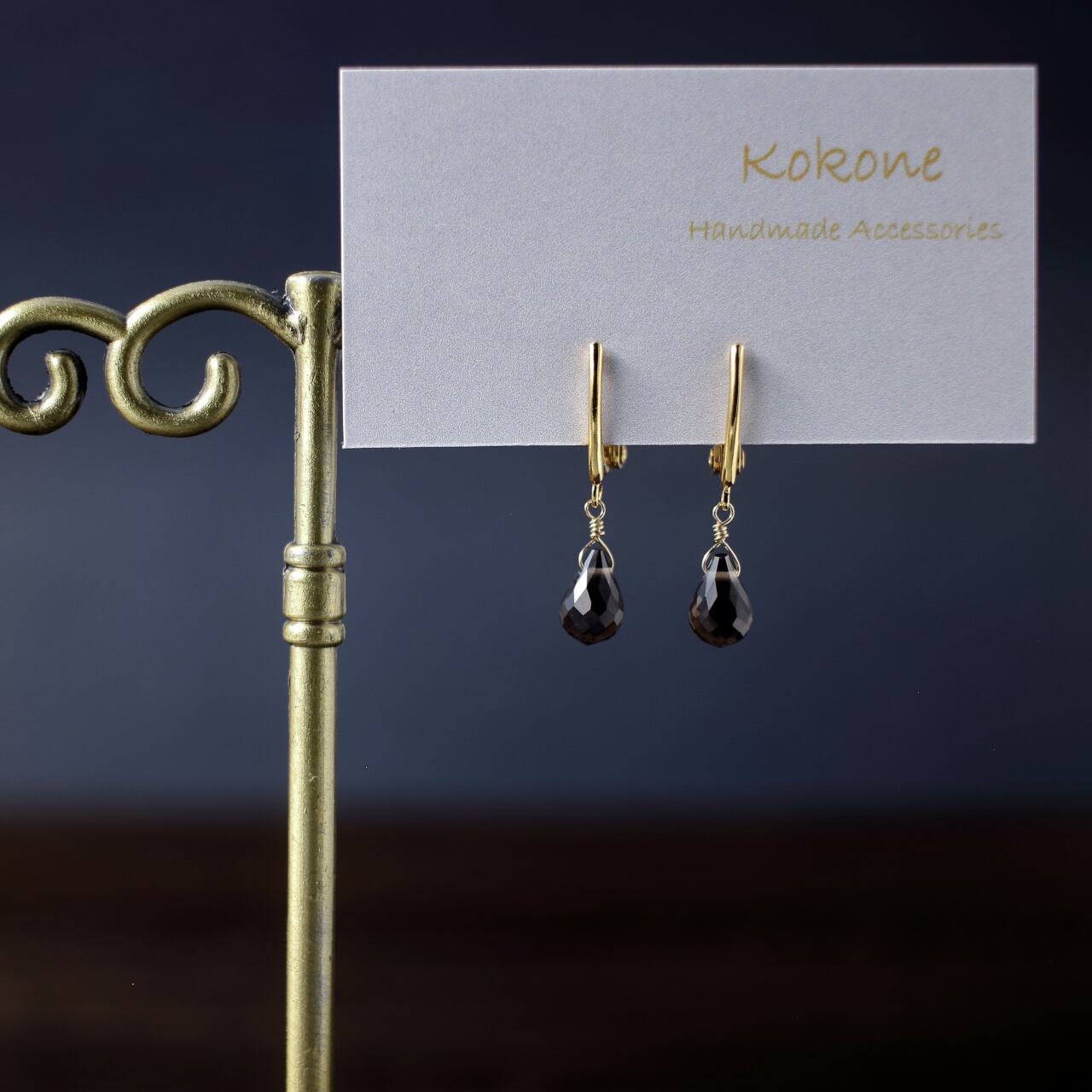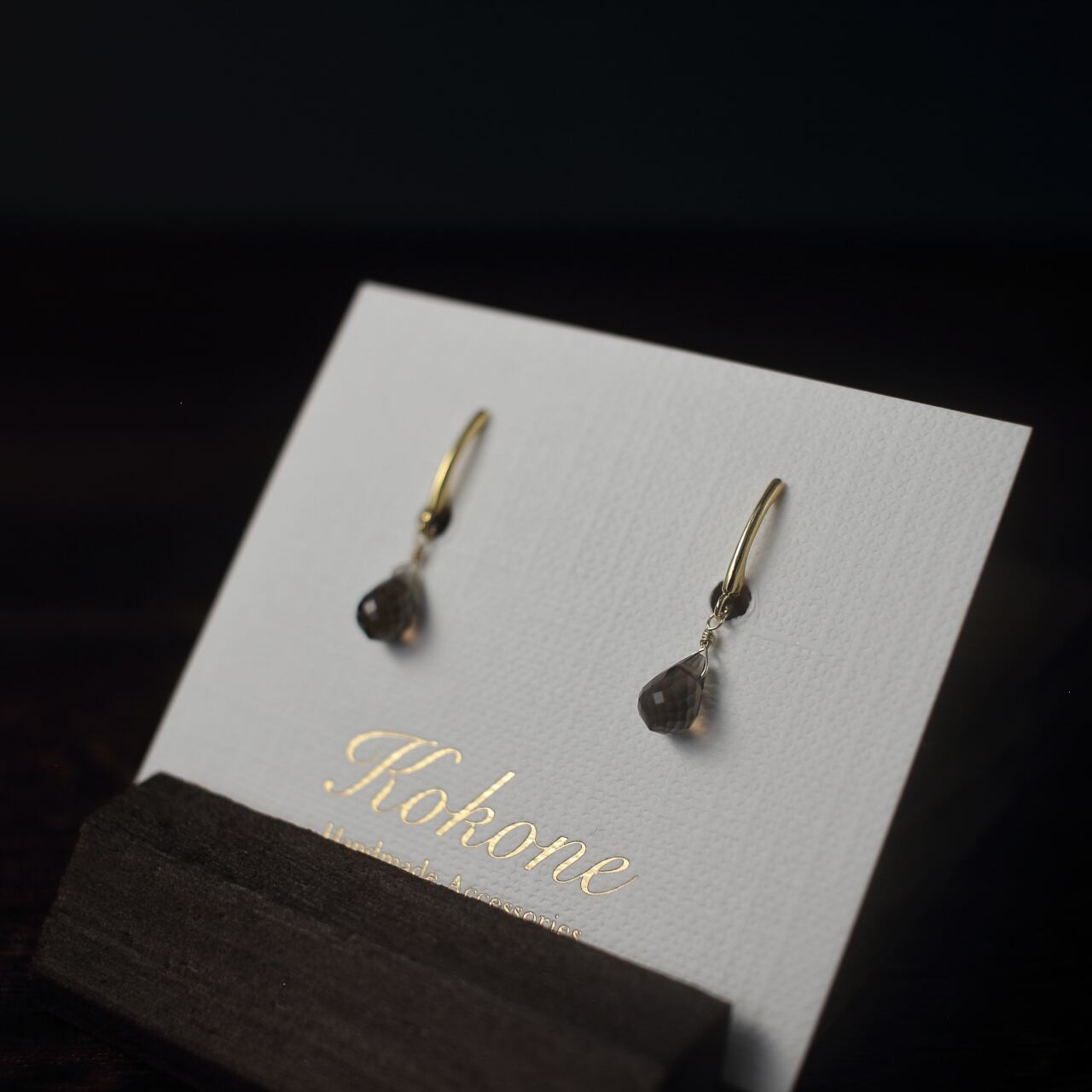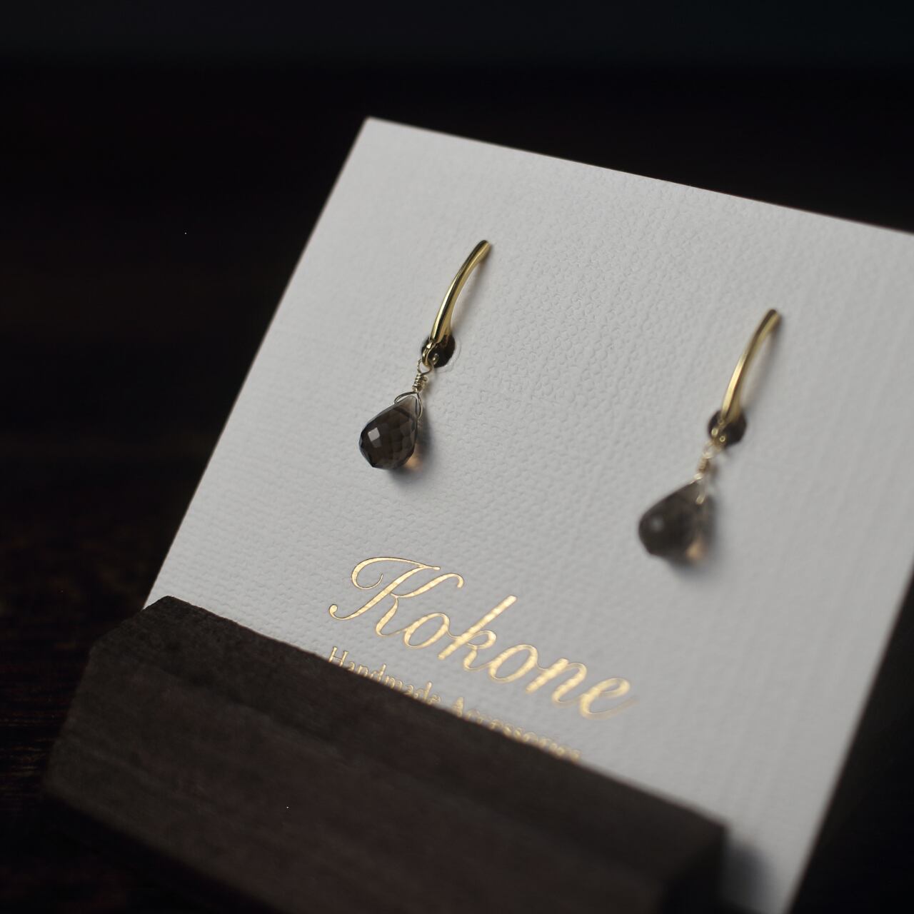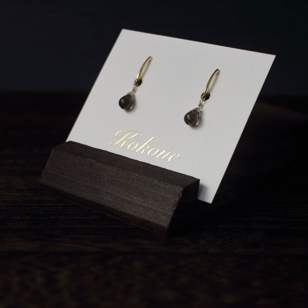 ドロップカットが美しいスモーキークォーツの一粒イヤリングです。
