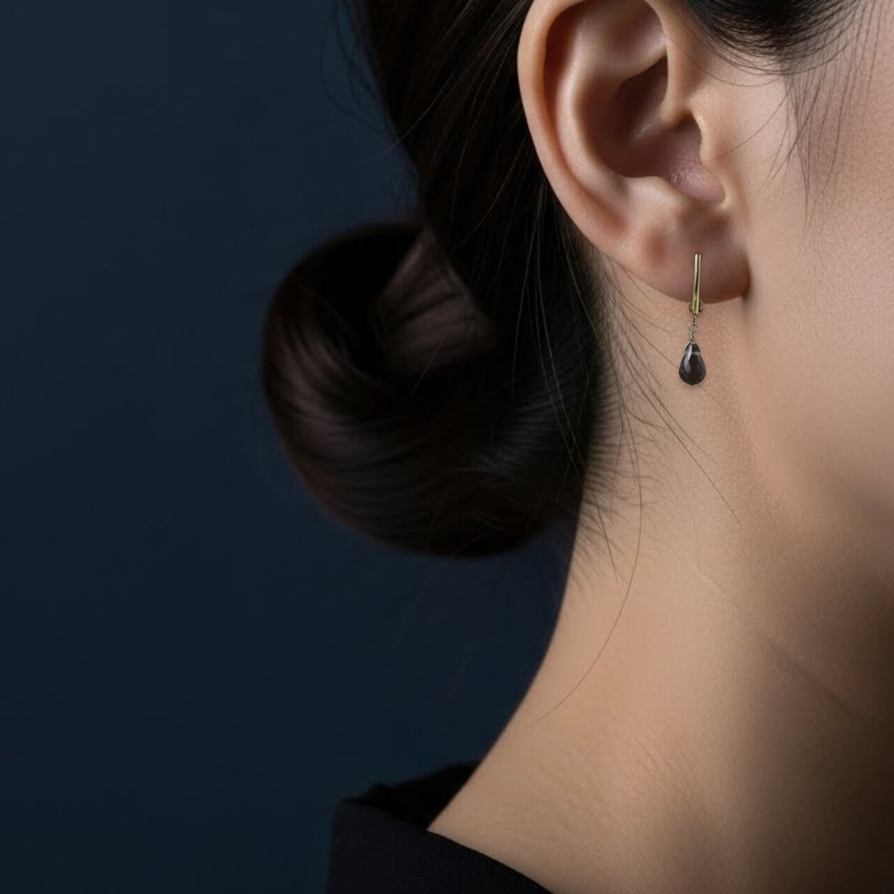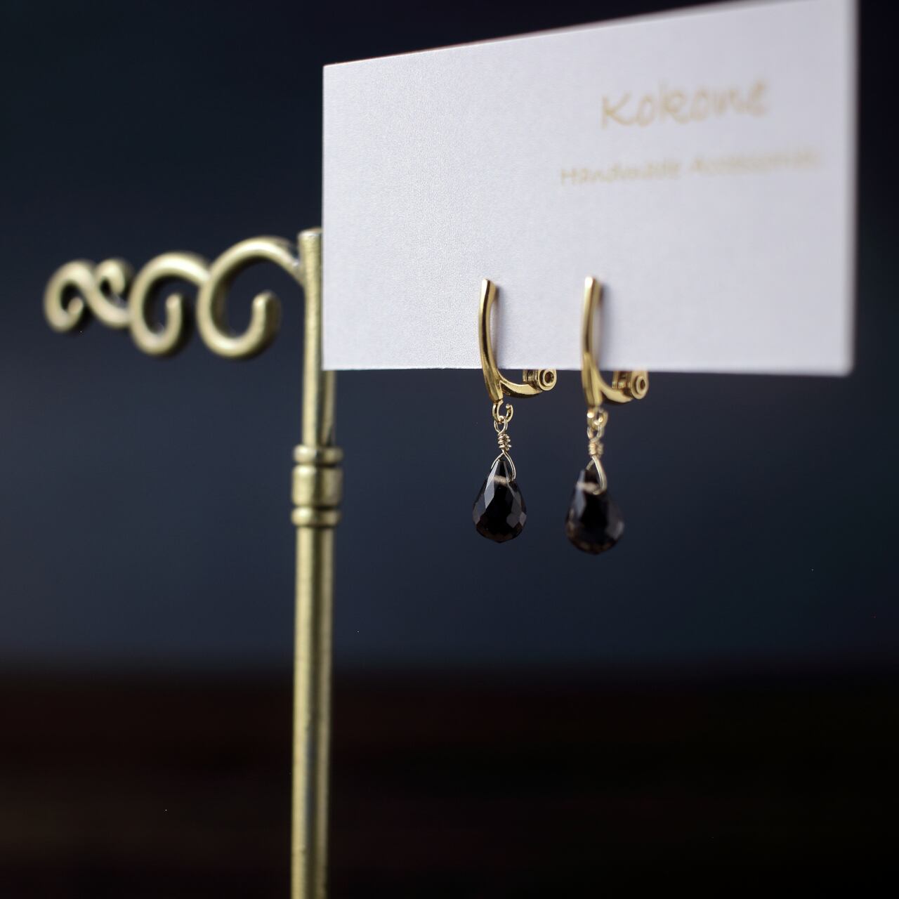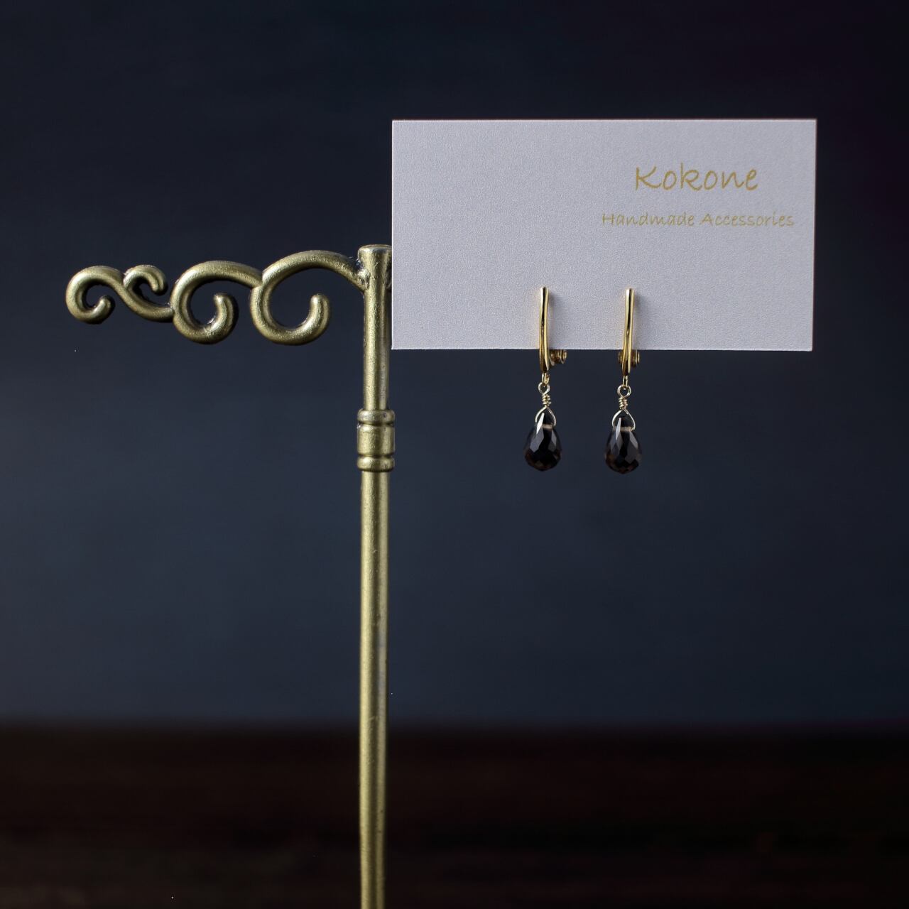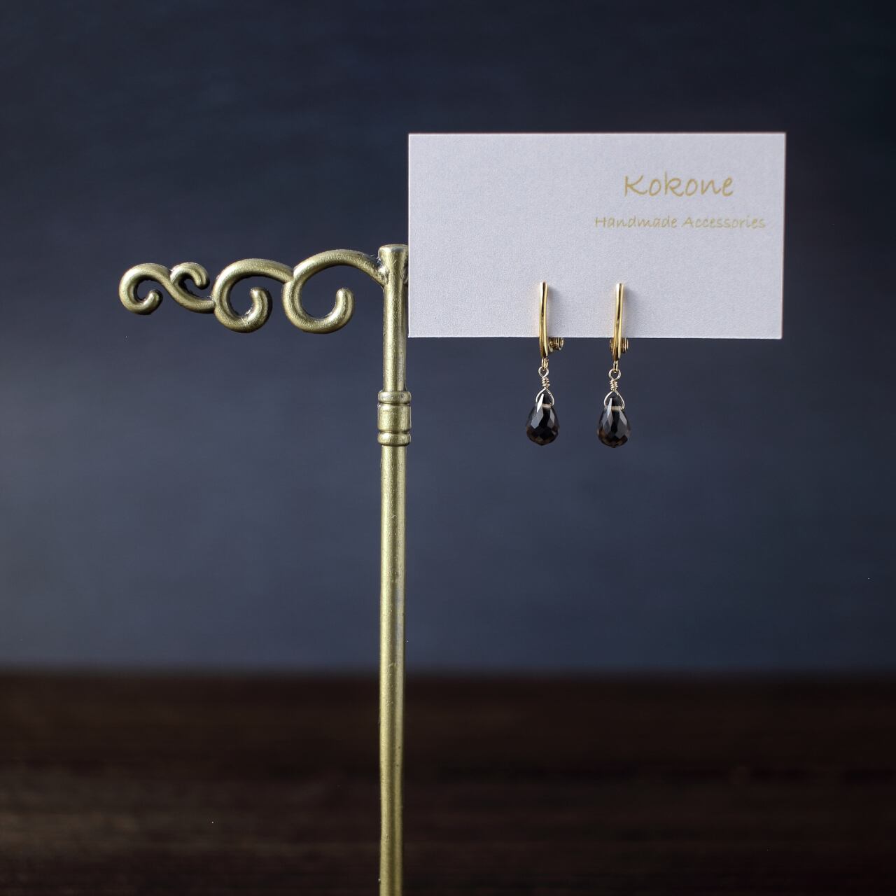 ドロップカットが美しいスモーキークォーツの一粒イヤリングです。