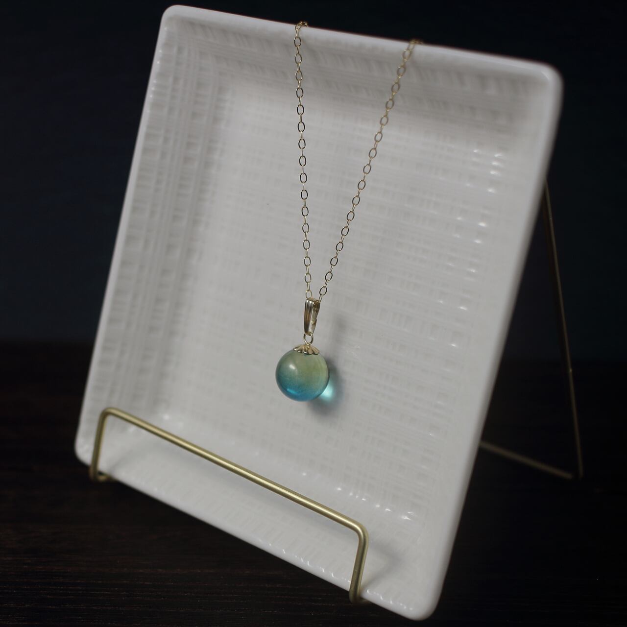 ブルーグリーンカラーアンバーのネックレス
